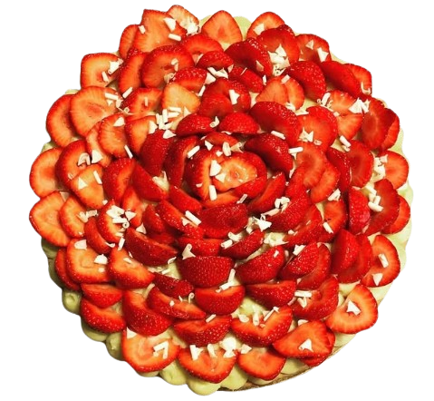 Pâte sucrée avec une crème pâtissière, des fruits des fraises et une brillance avec un nappage abricot.